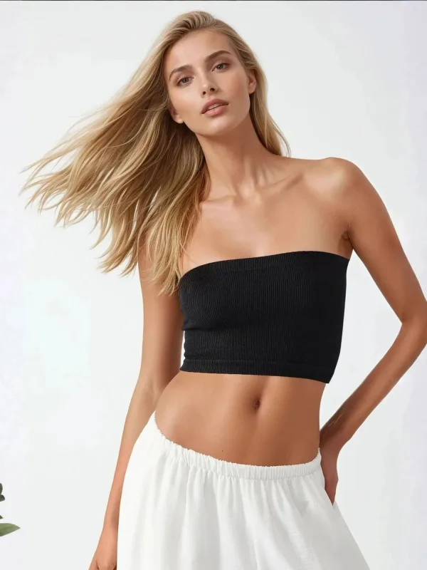 Design: Geribbeld gebreid; Materiaal: Jersey; Motief: Effen; Soort bandjes: Bandeau; Extra's: Op staal naden; Pasvorm: Aansluitende pasvorm; Armlengte: Mouwloos; Lengte: Korte pasvorm