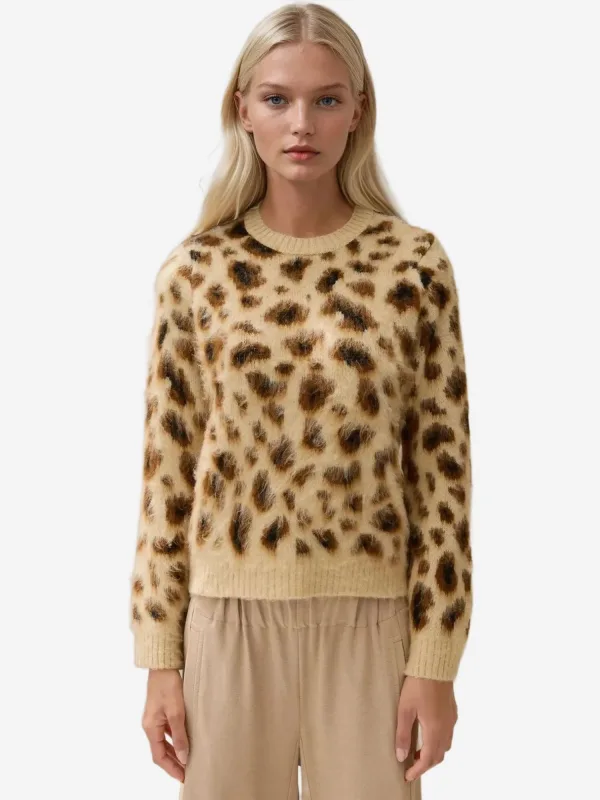 Design: Geribd ceintuurtje; Materiaal: Knitwear; Halstype: Ronde hals; Motief: Dierenprint; Extra's: All-over patroon; Pasvorm: Normale pasvorm; Armlengte: Lange mouw; Lengte: Normale lengte