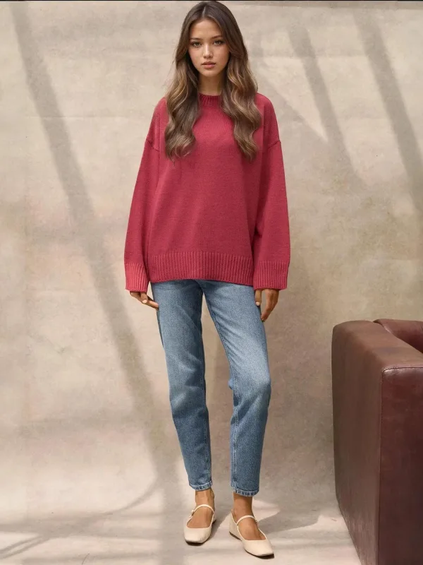 Design: Overcut schouder; Materiaal: Knitwear; Halstype: Ronde hals; Motief: Effen; Extra's: Fully fashioned; Pasvorm: Losse pasvorm; Armlengte: Lange mouw; Lengte: Normale lengte