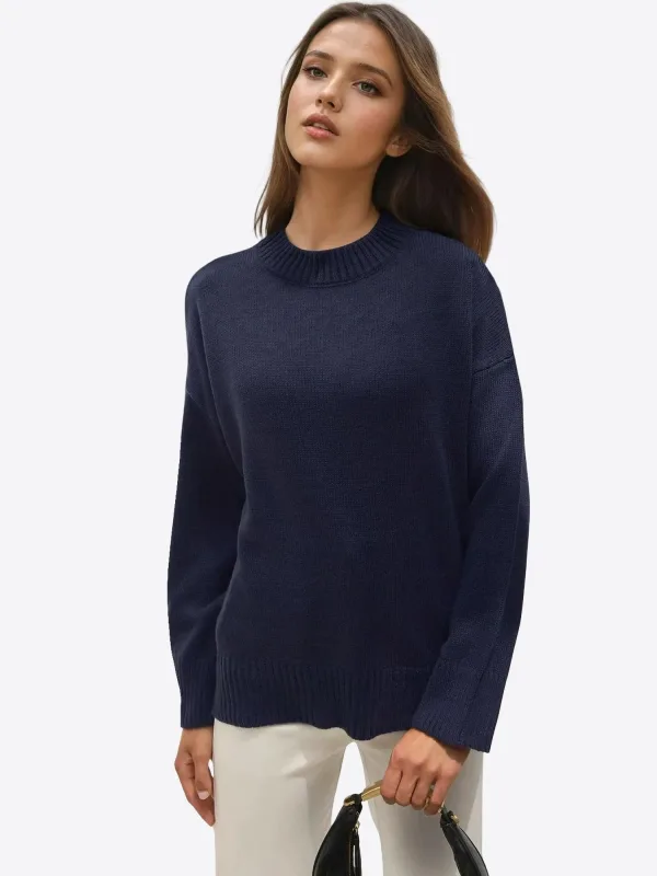 Design: Geribbelde kraag; Materiaal: Knitwear; Halstype: Ronde hals; Motief: Effen; Extra's: Fully fashioned; Pasvorm: Losse pasvorm; Armlengte: Lange mouw; Lengte: Normale lengte