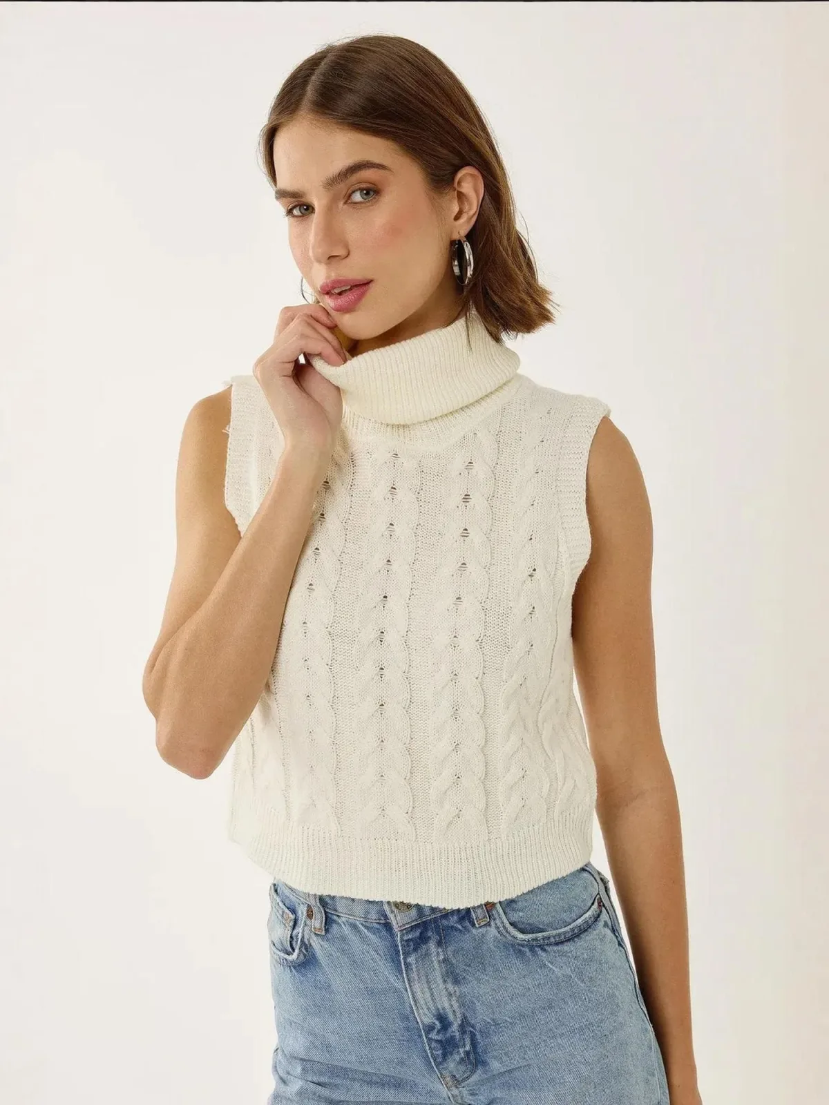 Design: Geribd ceintuurtje; Materiaal: Knitwear; Halstype: Col; Motief: Effen; Extra's: Fully fashioned; Pasvorm: Normale pasvorm; Armlengte: Mouwloos; Lengte: Normale lengte