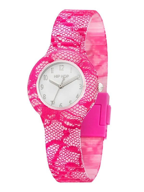 Specificaties: Hip Hop Analoog horloge ‘Lace’ lichtroze / offwhite