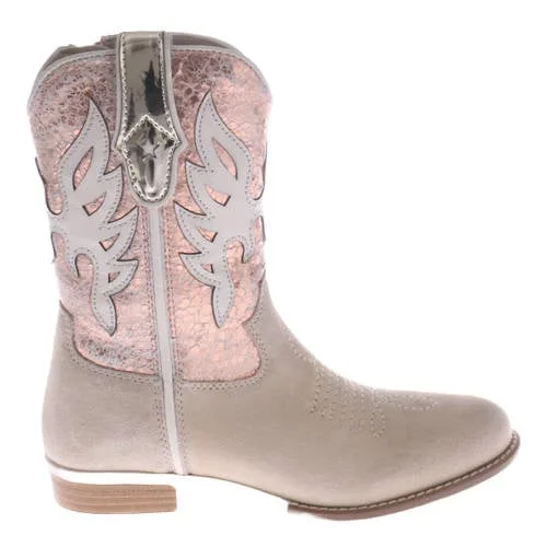 Hip leren laarzen beige/metallic roze Prijzen