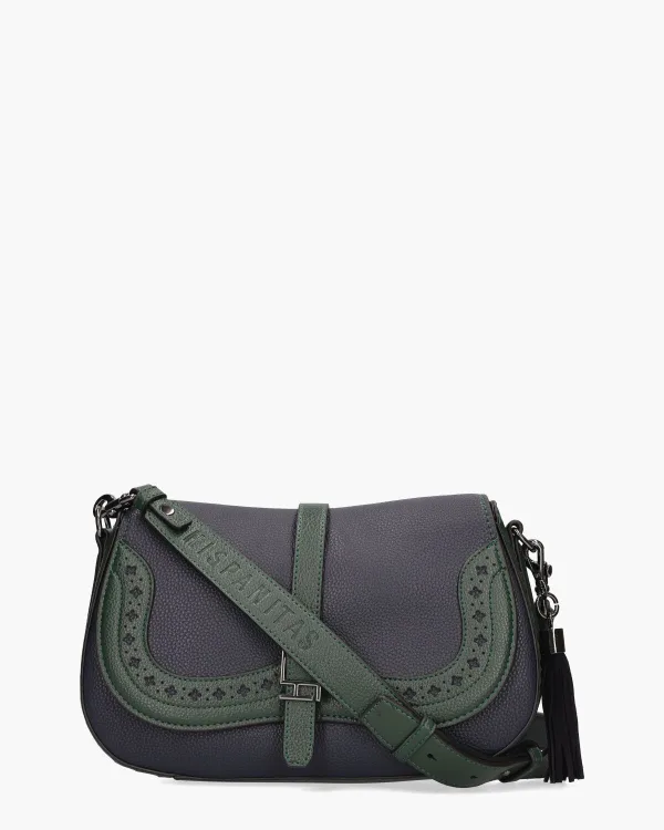 Deze hand- of schoudertas BI2435360 van het Spaanse merk Hispanitas is een stijlvolle en veelzijdige accessoire. Gemaakt van duurzaam PU-materiaal in een combinatie van donkerblauw en groen, heeft deze tas een klassieke uitstraling. De binnenkant is gevoerd met Hispanitas logostof en biedtéén compartiment met een handig ritsvak voor het