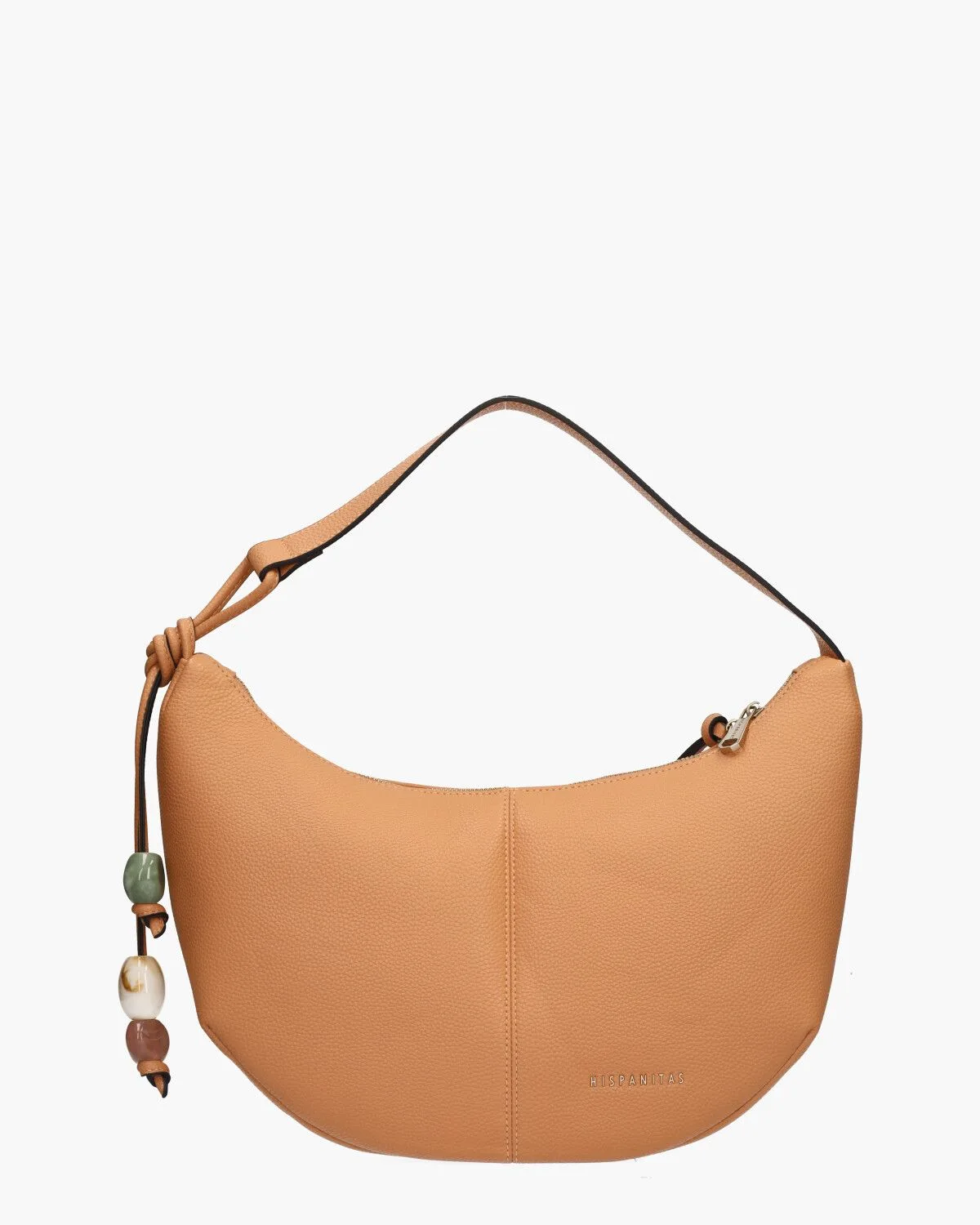 Deze oranje hobobag van het merk Hispanitas BV253974 combineert eenvoud met verfijning. Het zachte PU-materiaal en de ronde vormen geven de tas een tijdloze uitstraling. De tassel met gemarmerde kralen zorgt voor een speels accent, terwijl het gouden logo aan de voorkant net dat beetje extra geeft. In het met logostof gevoerde hoofdvak vind
