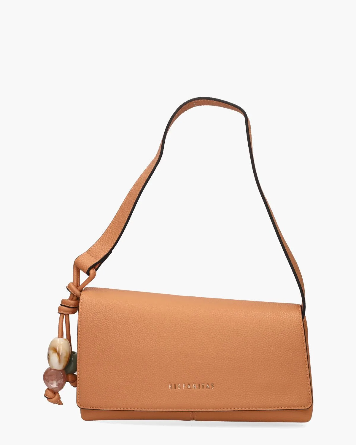 Dit handtasje BV253975 van Hispanitas is stijlvol tot in de details. Het model is uitgevoerd in oranje gestructureerd imitatieleer en afgewerkt met een subtiele glans. De tassel met gemarmerde kralen voegt een speelse touch toe, terwijl het gouden reliëflogo aan de voorkant zorgt voor een chique uitstraling. De logo-stoffen