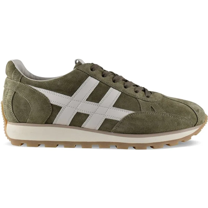 Sneakers 86er in kaki suède Hogan.Handtekening H logo in wit leer op de zijkanten.Dubbele zool in wit en ingekeept in bruin rubber.Vetersluiting.Made in Italy.