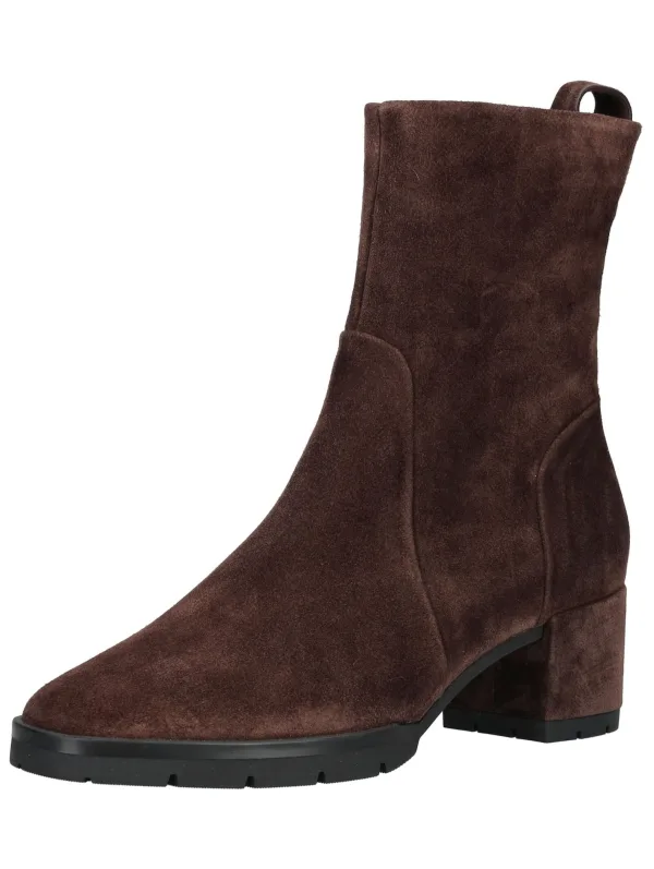 Design: Ritssluiting, Hielband; Type sluiting: Ritssluiting; Type hak: Blokhak; Materiaal: Leer; Motief: Effen; Materiaal: Suède; Schoenneus: Ronde neus; Extra's: Op staal naden, Velours look; Hakhoogte: Middelhoge hak (3-7 cm)