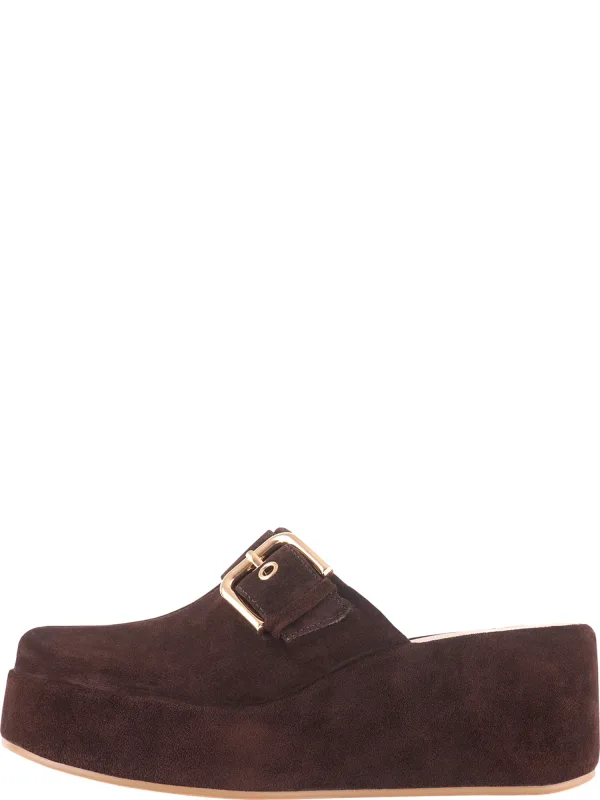 Design: Anatomisch gevormd voetbed; Type sluiting: Slip; Type hak: Sleehak; Materiaal: Leer; Motief: Effen; Plateau: Met plateau; Materiaal: Suède; Schoenneus: Ronde neus; Hakhoogte: Middelhoge hak (3-7 cm)