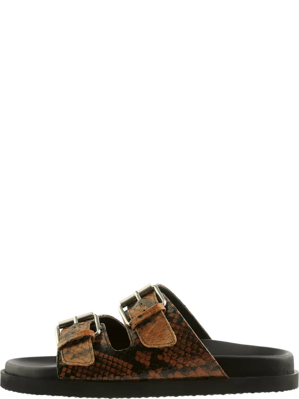 Design: Anatomisch gevormd voetbed; Type sluiting: Gesp; Materiaal: Leer; Motief: Dierenprint; Materiaal: Glad leer; Schoenneus: Open toe; Hakhoogte: Platte hak (0-3 cm)
