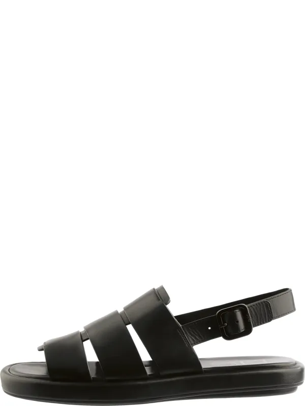 Design: Anatomisch gevormd voetbed; Type sluiting: Gesp; Materiaal: Leer; Motief: Effen; Plateau: Met plateau; Materiaal: Glad leer; Schoenneus: Open toe; Hakhoogte: Platte hak (0-3 cm)