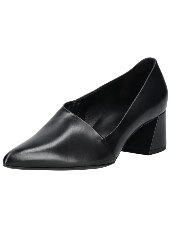 Type sluiting: Slip; Type hak: Blokhak; Materiaal: Leer; Motief: Effen; Materiaal: Glad leer; Schoenneus: Spitse neus; Extra's: Op staal naden; Hakhoogte: Middelhoge hak (3-7 cm)