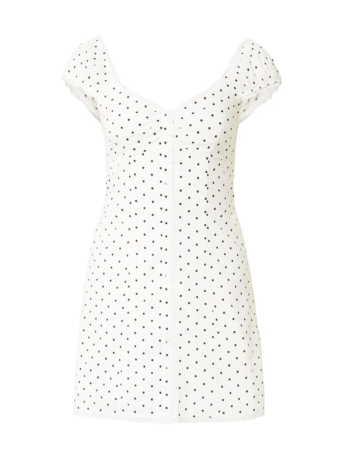 Design: Gesneden mouw, Placket, Elastische inzetstukken; Type sluiting: Knoopsluiting; Materiaal: Katoen; Motief: Gestippeld; Details: Kant, Gedrapeerd; Extra's: All-over patroon, Voelt zacht aan; Lengte: Kort/mini; Snit: Getailleerd; Pasvorm: Slanke pasvorm; Armlengte: Kwartmouw