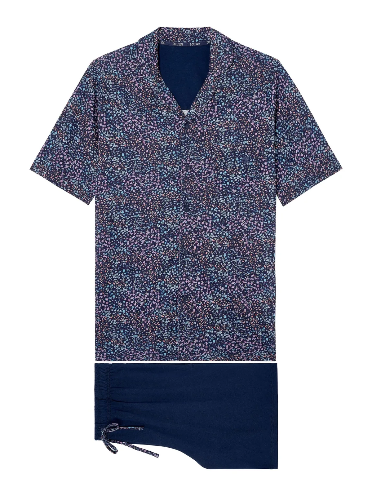 HOM Pyjama kort ‘ Sleepwear Vineyard ‘ navy / turquoise / pink