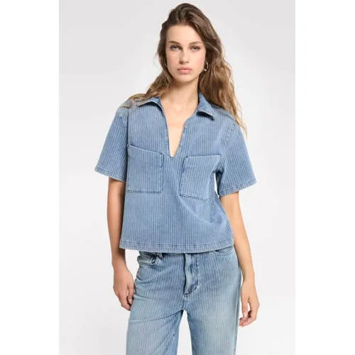 Homage to Denim denim top met krijtstreep medium blue denim Prijzen