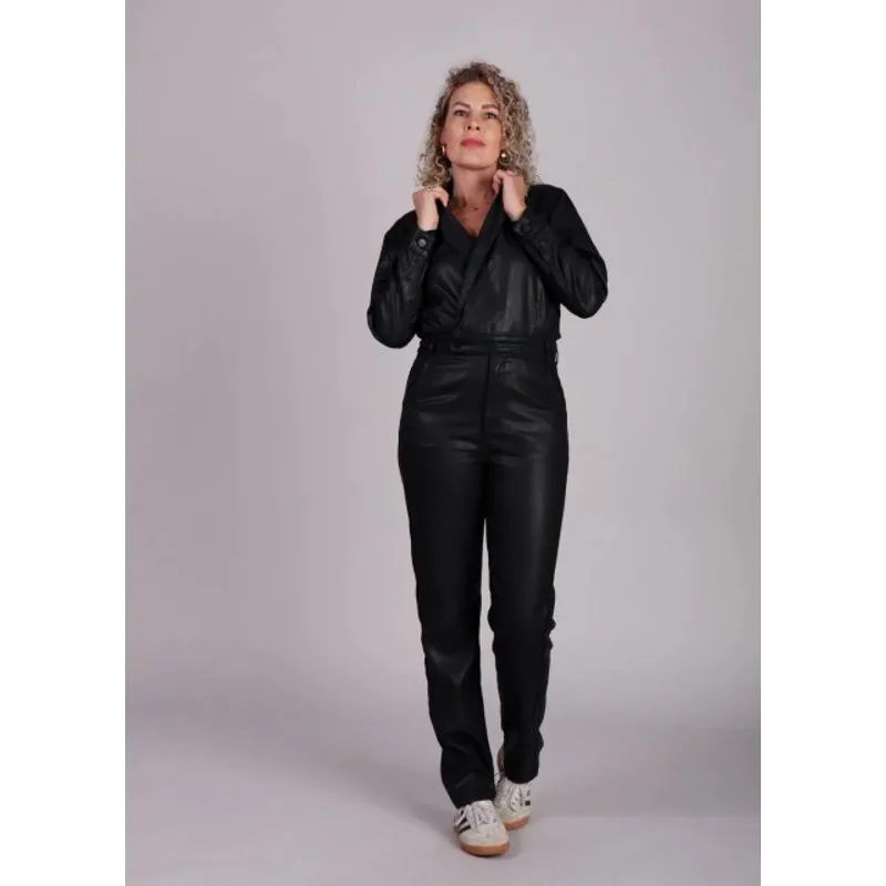 Zwarte flowy coated cross over jumpsuit van het merk Homage. De flowy coated cross over jumpsuit is een eigentijdse variant op de klassieke jumpsuit. Deze jumpsuit combineert een strakke fit aan de bovenkant met rechte pijpen, wat zorgt voor een elegant silhouet. De coating voegt een extra vleugje luxe en detail toe, waardoor deze jumpsuit gegarandeerd de show steelt. De lage cross body hals en de herkenbare Homage knopen geven deze jumpsuit een unieke twist, de elastische taille van de zwarte gecoate jumpsuit zorgt voor een comfortabele fit. De zwarte cross over jumpsuit van Homage is altijd een winnende keuze! Product details: Knoops- en blinde rits sluiting Diepe V-hals Lange mouwen Rechte lange pijpen Elastische taille Borstzakken, steekzakken en achterzakken 100% Lyocell: hoogwaardig en duurzaam materiaal dat er fantastisch uitziet en comfortabel aanvoelt. Pasvorm: Valt op maat Het model is 172 cm en draagt maat 36 Geproduceerd in Turkije Binnenstebuiten wassen op 30°; zo min mogelijk wassen om de coating te behouden.