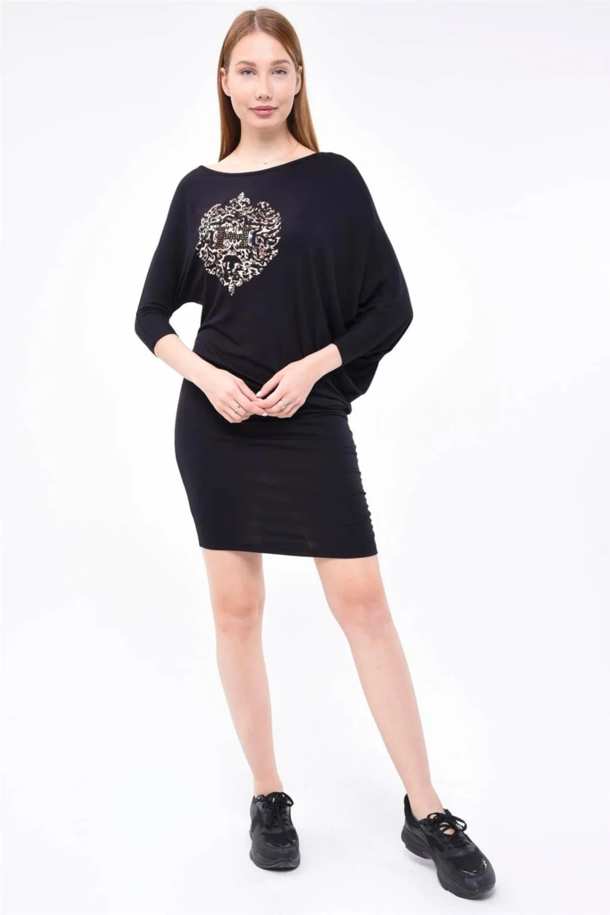 Design: Gevoerde zoom/rand, Vleermuismouwen; Materiaal: Viscose; Halstype: Boothals; Motief: Motiefprint; Details: Gedrapeerd; Extra's: Lichte stof; Lengte: Kort/mini; Snit: Figuur omarmend; Pasvorm: Slanke pasvorm; Armlengte: Driekwart mouw