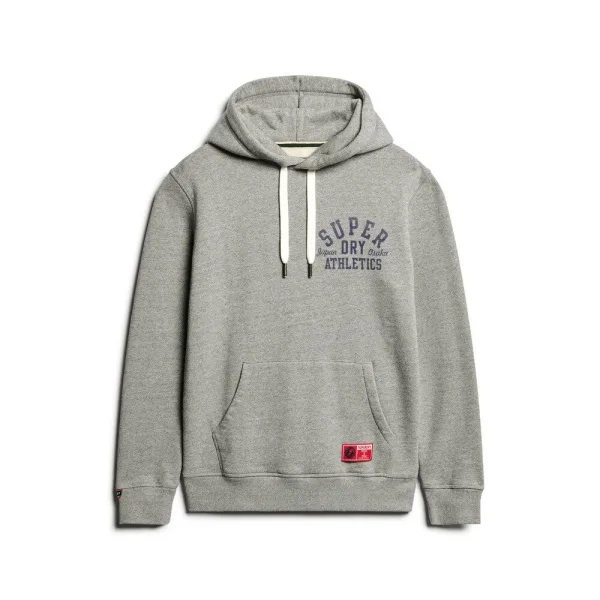 Geïnspireerd door traditionele universitaire sportkleding voegt de Track & Field hoodie onmiddellijk een sportieve touch aan je look toe. Lichter dan je klassieke hoodies, is hij ideaal om te dragen als laagje tijdens een avondje uit. Hij is ook veelzijdig genoeg om je warm te houden wanneer de temperaturen dalen. Hoe je deze hoodie ook draagt, je zult er altijd top uitzien. Relaxed fit - de klassieke pasvorm van Superdry. Niet te strak en niet te wijd. Precies goed. Kies je gebruikelijke maat. Gewatteerde capuchon met trekkoord en kruiscol. Lange mouwen. Kangoeroezak. Rib gebreide boorden en onderzoom. Ongeborstelde, geblindeerde voering. Vintage printmotief. Embleem op de zak. Label op de mouw.