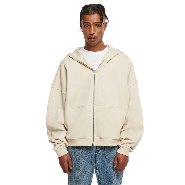 Deze relaxte en casual herenhoodie met ritssluiting heeft een losse pasvorm met afhangende schouders en lange mouwen. De zachte badstof, gemaakt van een katoen-polyester mix, is zeer comfortabel om te dragen. Details zoals de grote capuchon, de opengesneden kangoeroezak en de extra lange mouwen geven hem een urban look. Hij opent en sluit met een metalen ritssluiting.Buitenstof 1: 65% katoen 35% polyester, badstof, 300 g/m².