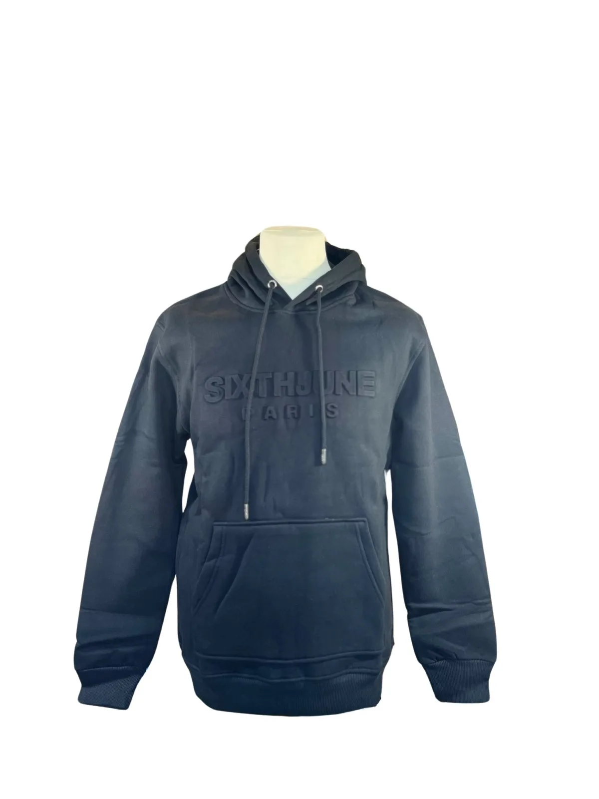 Herenhoodie van Sixth June.Logo in reliëf op voorkant, kangoeroezak.Dikke, warme stof met fleecevoering.Samenstelling: katoen (70%) - polyester (30%).Print: geen.Uitvoering: effen.Kraag: nee.Lengte: standaard.Mouwen: lang.