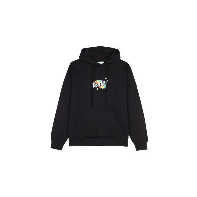 Details:Hoodie Rainbow Zwart. Hoodie Tealer zwart uit de lente/zomer 2022 collectie. Logo Tealer op de voorkant met kangoeroezak en contrasterende trekkoorden. Verborgen zak op de kap. Materiaal:100% katoen
