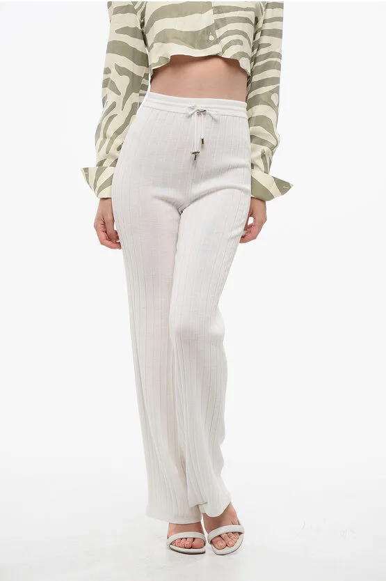 Hoog getailleerde geribbelde maagdelijke wollen broek in wit Prijzen