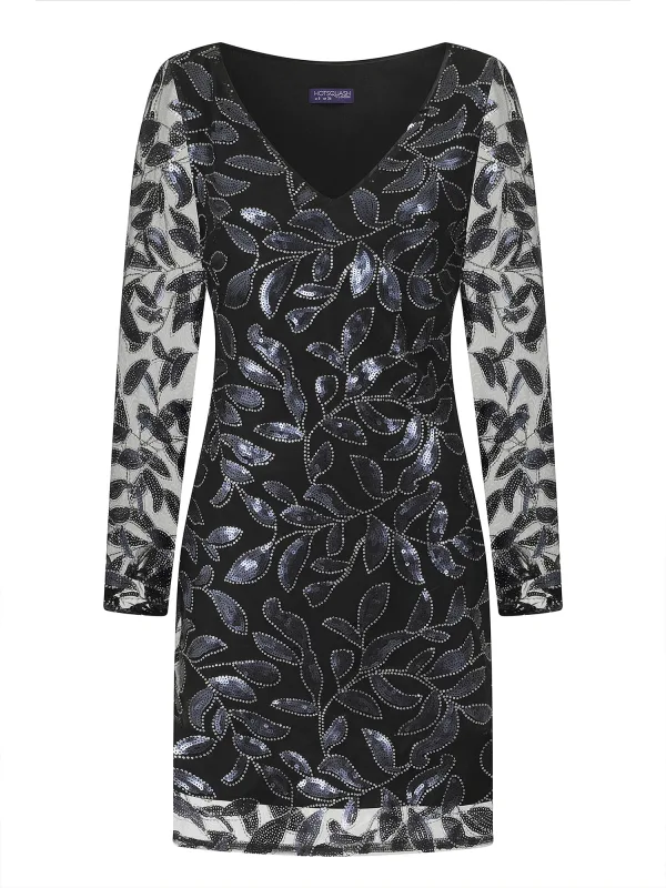 Halstype: V-hals; Motief: Effen; Details: Pailletten; Lengte: Kort/mini; Pasvorm: Slanke pasvorm; Armlengte: Lange mouw