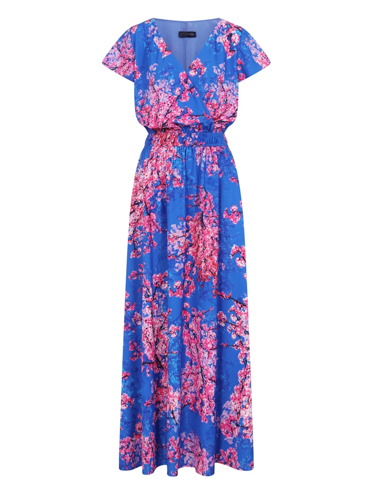 Materiaal: Chiffon; Halstype: V-hals; Motief: Bloemenprint; Details: Gedrapeerd, Wikkel design; Lengte: Lang/maxi; Pasvorm: Normale pasvorm; Armlengte: Kwartmouw