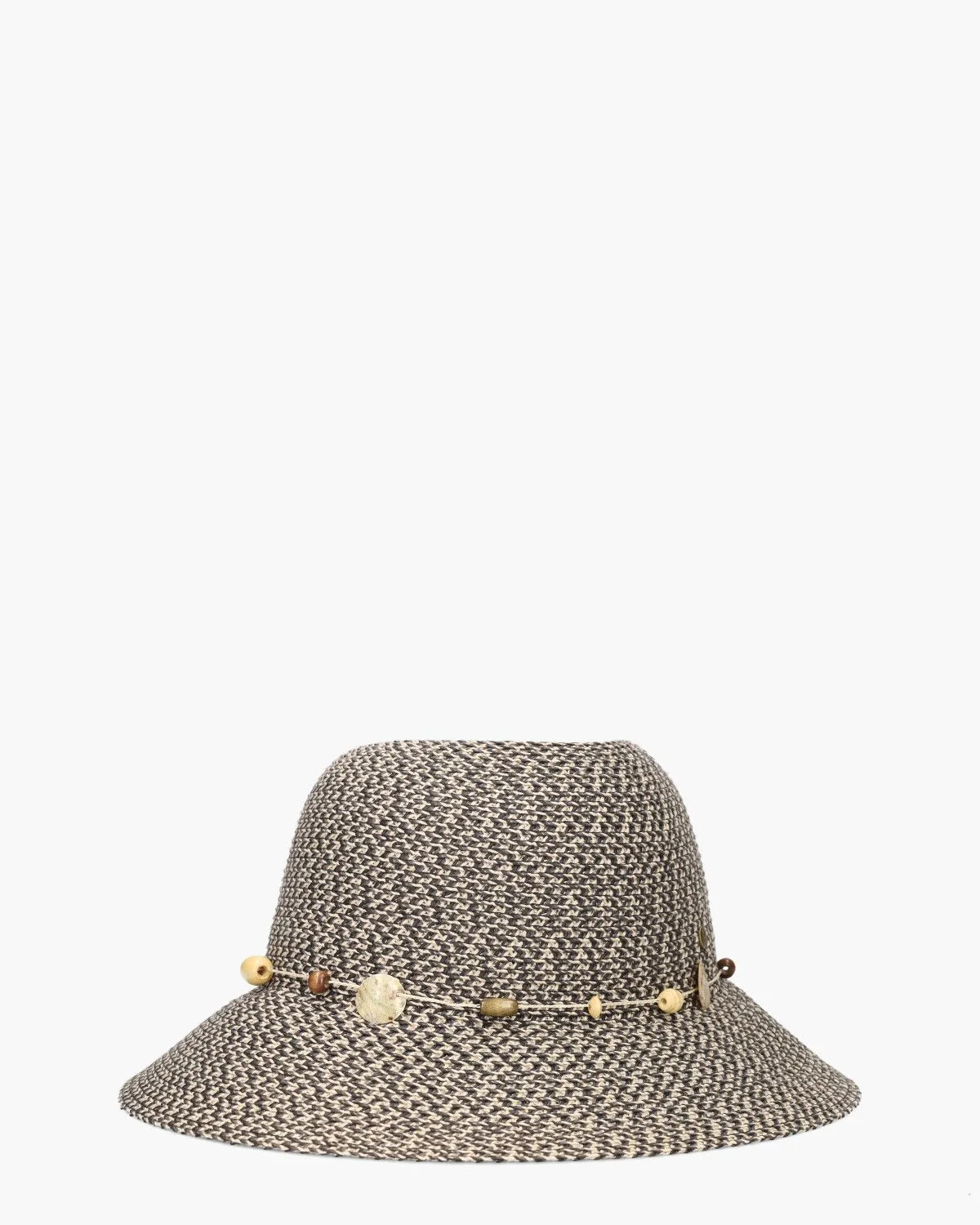 Grijze/beige dameshoed Gatsby uit de collectie van het merk House Of Ord - Cape Town. Dit model is vervaardigd van 50% gevlochten polyester en 50% natuurlijke vezels en is versierd met een koordje met kralen rondom de kroon. Met een brede rand van 8 cm biedt deze zonnehoed uitstekende zonbescherming. Bovendien beschikt de bucket hat over een
