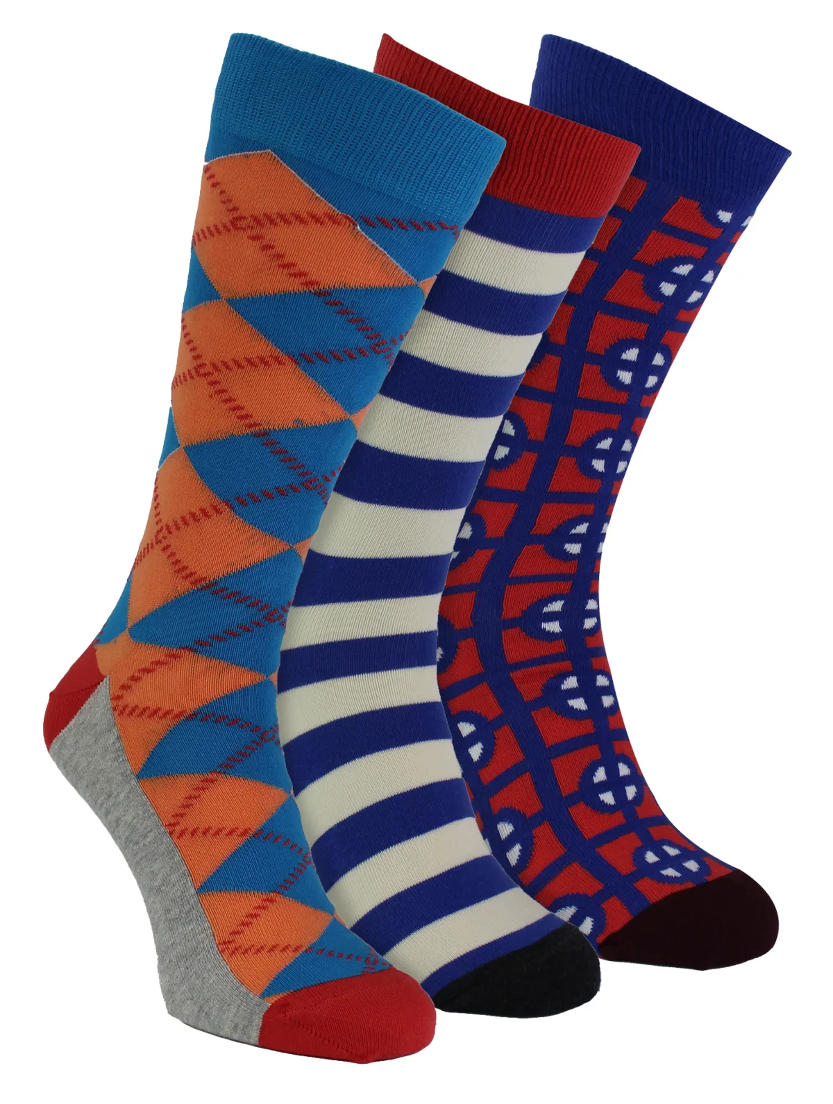 HS by Happy Socks – Heren 3-Pack Klassieke Structuur Kousen – Target (Blauw)