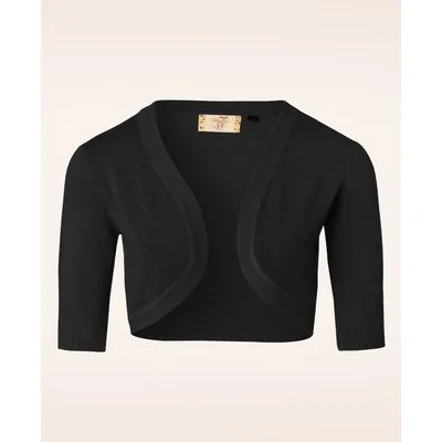 Zorg dat je retro outfit goed tot zijn recht komt met deze Hudson Bolero! Ook in de zomer kan het in de avond nog wat fris aanvoelen maar je hebt je mooiste zomerjurk aan en een jasje doet daar afbreuk aan, wat nu? Nou, deze stijlvolle bolero aanschaffen dus! Uitgevoerd in een warme, stretchy, fijngebreide rayonmix en afgerond aan de voorzijde zodat hij mooi langs je buste valt. Afgewerkt met een bredere ribboord langs de 1/2 mouwtjes voor een aansluitende pasvorm die mooi in vorm blijft. Laat je jas maar aan de kapstok want deze bolero is warm en elegant! * Afgeronde boord * 1/2 mouwtjes * Elastisch ribboord