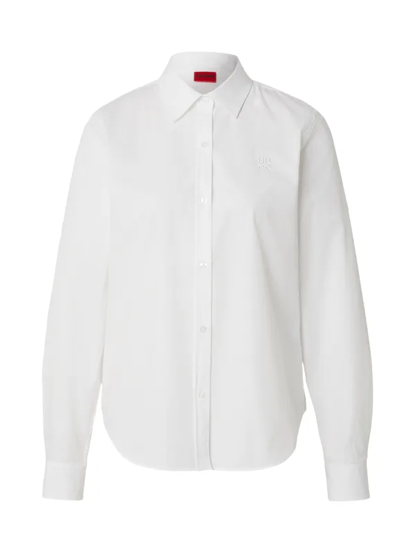 Dames overhemdblouse van HUGO;Model 'Essential';look: effen;Pasvorm: regular fit;kraagmodel: overhemdkraag;Applicatie: gestikt logo;Sluiting: enkele knoopsluiting;Mouwvorm: lange mouw;mouwboord: manchet;materiaalverwerking: popeline;Materiaal: puur katoen