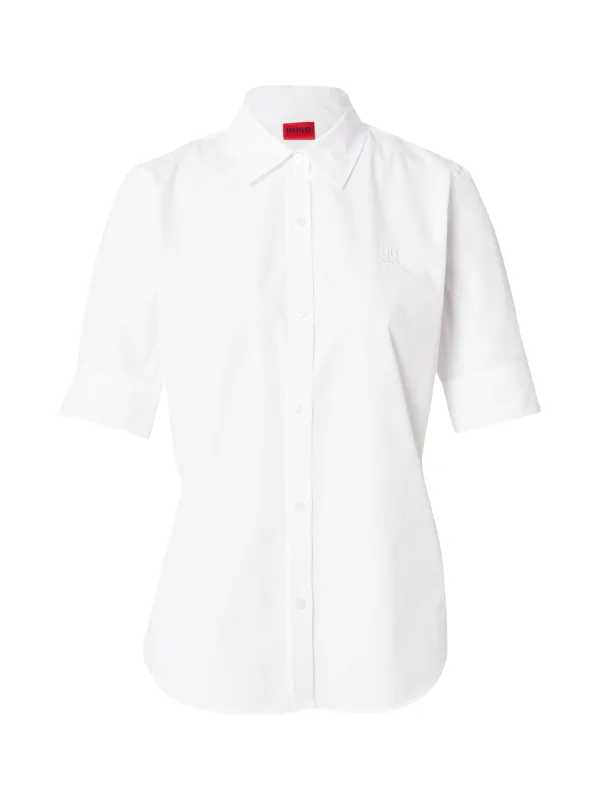 dames overhemdblouse overhemdblouse van HUGO;Model 'The Summer Shirt';look: effen;Pasvorm: oversized;Kraagmodel: Overhemdkraag;Applicatie: label stitching;Hals: V-hals;Sluiting: enkele knoopsluiting;Mouwvorm: korte mouw;Mouwboord: gefixeerde omslag;Rompzoom: licht afgerond;Materiaalverwerking: Popeline;Materiaal: puur katoen