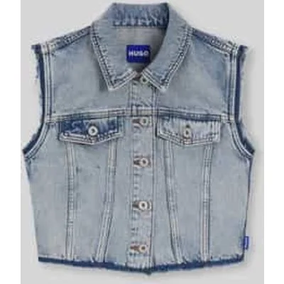 Dames jeansgilet van Hugo blauw;look: denim;Pasvorm: regular fit;Lengte: kort;Sluiting: enkelrijige knoopsluiting;Tassen: opgestikte borstzakken