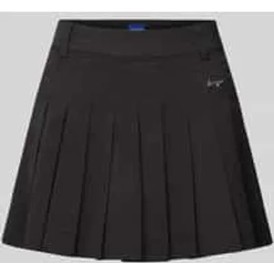 Dames Minirok van Hugo Blauw;Model 'Remisea-1';Look: effen;Pasvorm: uitlopend;Lengte: Mini;Applicatie: Labelapplicatie;Details: Riemlussen;Sluiting: Naadritssluiting;Zoom: Plisssee;Materiaal: Katoenmix