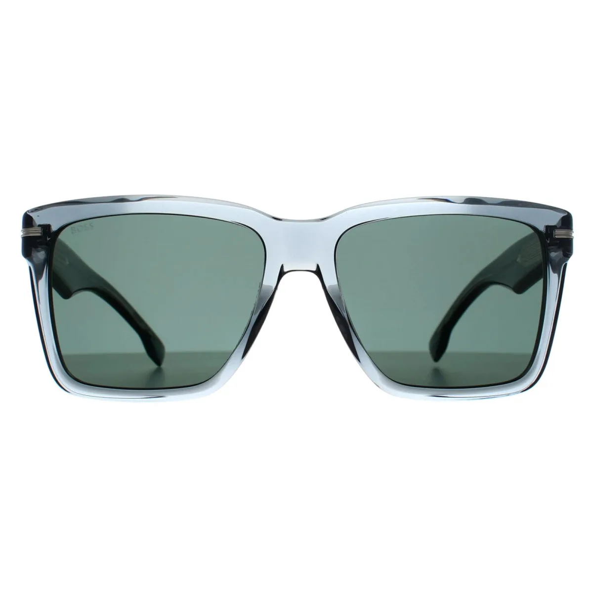 Hugo Boss Rectangle Heren Grijs Groen Spiegel BOSS 1745/S Zonnebril heeft een slank vierkant acetaat montuur met subtiele metalen details in drie strepen voor een verfijnde touch. Uitgerust met UV 400 glazen met kleurverloop, bieden ze uitstekende bescherming tegen de zon terwijl ze een moderne, mannelijke look geven die stijl en functionaliteit in balans brengt.