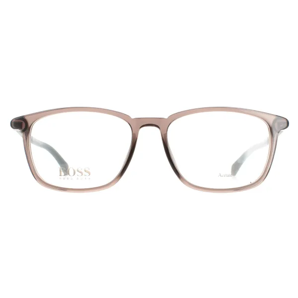 Hugo Boss rechthoekige heren transparante grijze baas 1133 glazen zijn een klassieke rechthoekige stijl gemaakt van lichtgewicht acetaat. Het Hugo Boss -logo is ingebed in de slanke tempels voor authenticiteit.