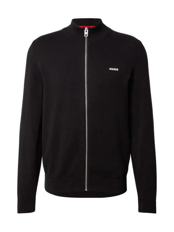 Gebreid jack van HUGO voor heren;Model 'San Jacomo';Look: effen;Pasvorm: Regular fit ;Sluiting: Ritssluiting;Kraagmodel: Schipperstrui;Applicatie: Labelstitching;Mouwvorm: lange mouwen;Mouwboord: geribd;Rompzoom: geribd;Materiaalverwerking: Knitwear;Materiaal: puur katoen