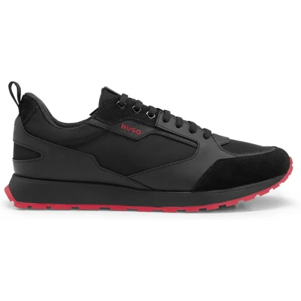 Hugo Heren Icelin Suede Paneel Hardlooptrainers (Zwart, Rood) Prijzen