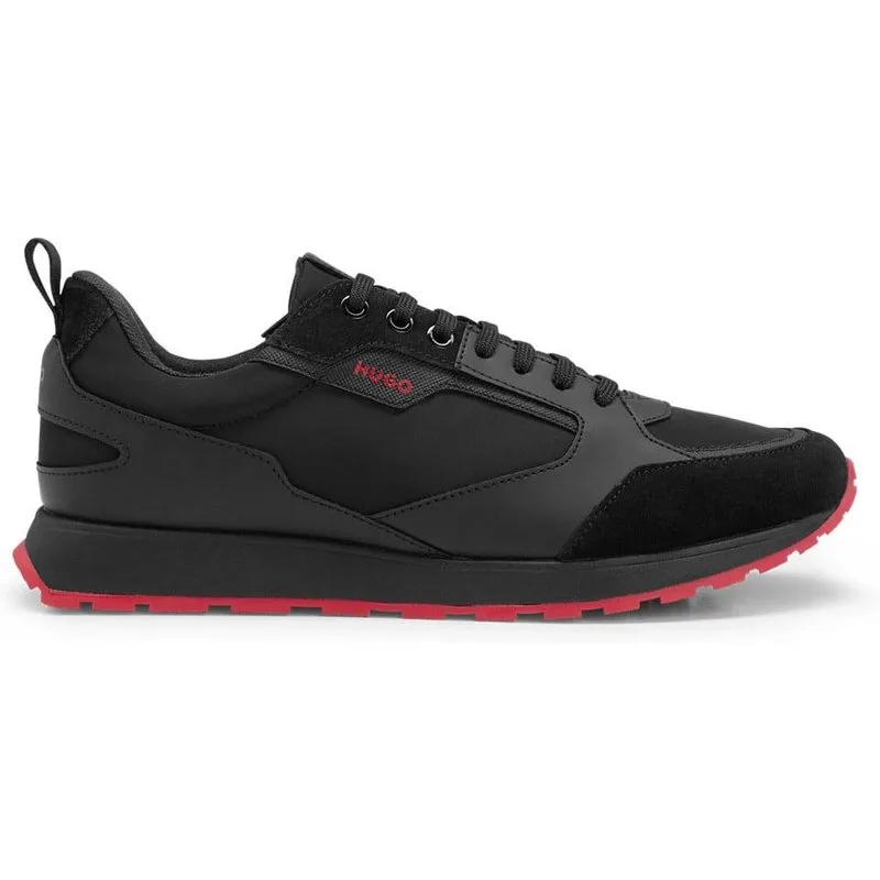 Hugo Heren Icelin Suede Paneel Hardlooptrainers (Zwart, Rood)
