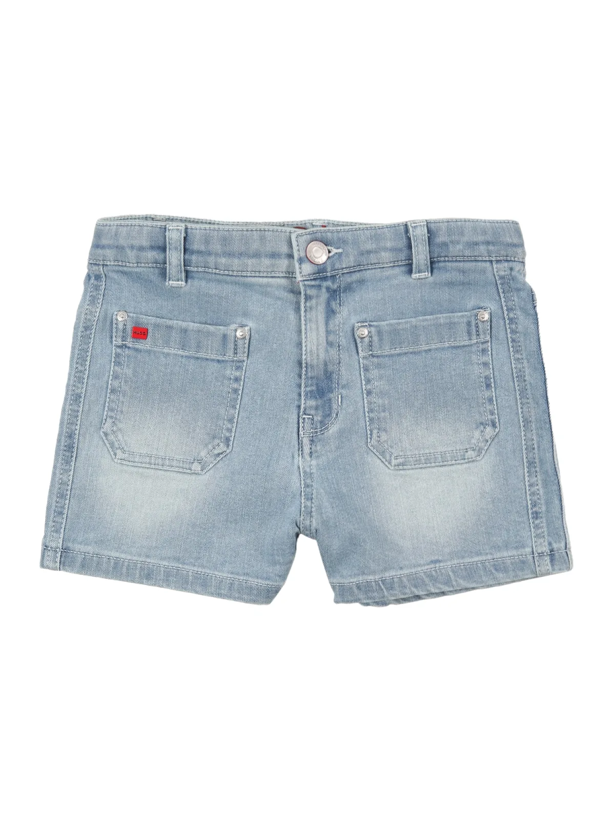 Design: Ritssluiting, Opgezette zakken, Achterzak; Type sluiting: Ritssluiting; Materiaal: Denim; Motief: Effen; Extra's: Label patch/label flag, Vaste grip, Riemlussen; Wassing: Heavy washed; Lengte: Kort/mini; Pasvorm: Regular