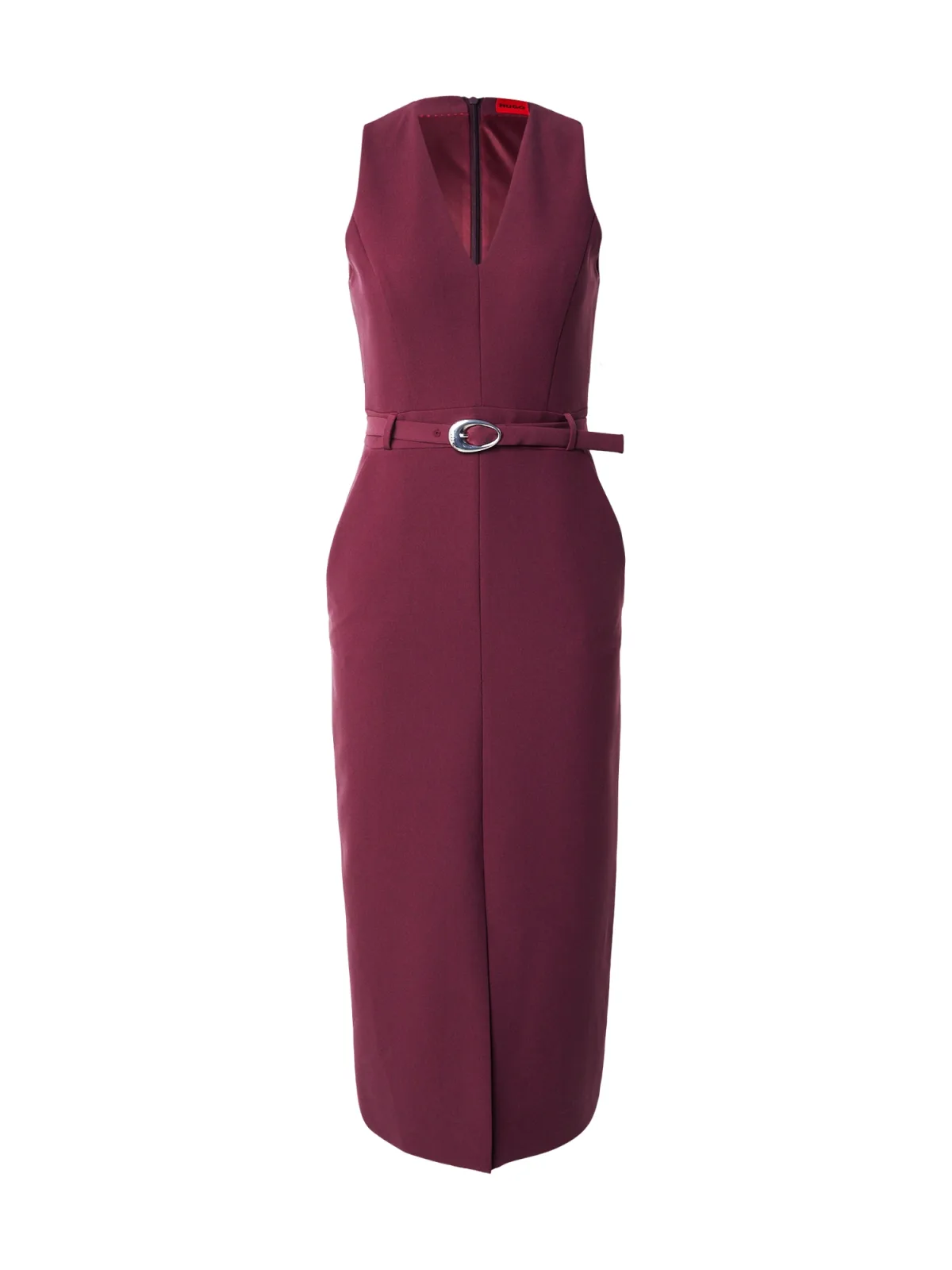 Design: Gevoerde zoom/rand, Split, Rug rits, Diepe snit/decolleté, Met riem; Type sluiting: Ritssluiting; Materiaal: Gerecycled materiaal; Halstype: V-hals; Motief: Effen; Extra's: Op staal naden, Riemlussen; Lengte: Knielengte; Snit: Figuur omarmend; Pasvorm: Aansluitende pasvorm; Armlengte: Mouwloos