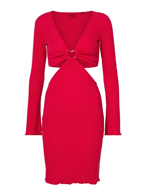 Design: Geribbeld gebreid, Gerolde boord, Diepe snit/decolleté; Materiaal: Jersey; Halstype: V-hals; Motief: Effen; Details: Cut-outs, Gedrapeerd; Extra's: Op staal naden, Label preegdruk, Voelt zacht aan; Lengte: Kort/mini; Snit: Figuur omarmend; Pasvorm: Aansluitende pasvorm; Armlengte: Lange mouw