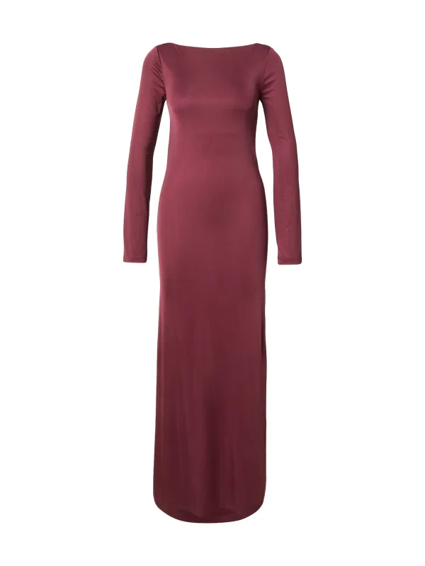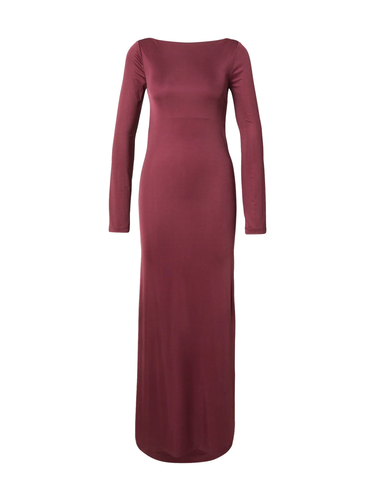 Design: Gevoerde zoom/rand, Uitgesneden rug; Type sluiting: Haakjes; Materiaal: Jersey; Halstype: Boothals; Motief: Effen; Details: Gedrapeerd, Backless; Extra's: Label plaatje, Op staal naden, Voelt zacht aan; Lengte: Lang/maxi; Snit: Getailleerd; Pasvorm: Slanke pasvorm; Armlengte: Lange mouw
