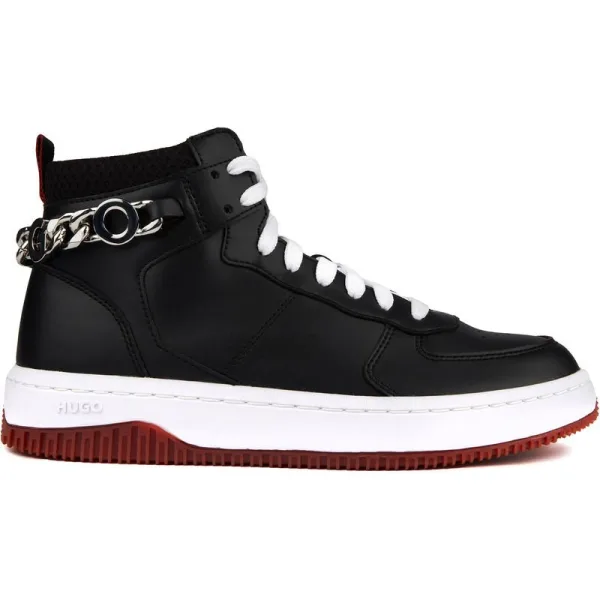 Ga stijlvol op pad met de HUGO Kilian Hito. Deze strakke zwarte lederen hoge sneakers zijn de perfecte combinatie van mode en functionaliteit. Het premium leren bovenwerk met het dikke. zilveren kettingverbetering zorgt voor een gepolijste look met een edgy streetstyle-uitstraling. terwijl de duurzame rubberen zool en het gedempte voetbed de hele dag comfort bieden terwijl je met je spullen loopt.