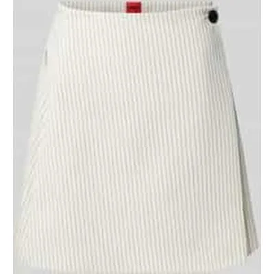 dames mini-rok van HUGO;Model 'Riberi';look: all-over motief;pasvorm: licht uitlopend;Lengte: mini;Patroon: gestreept;Details: wikkellook, bandplooi;Sluiting: ritssluiting;Zoom: recht;Materiaalverwerking: twill
