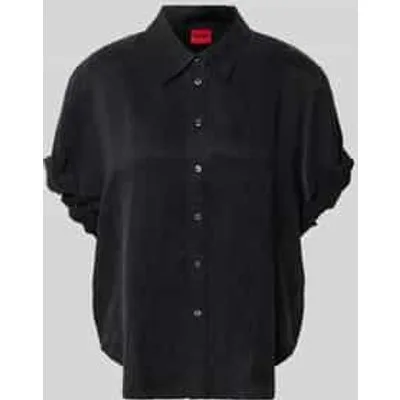 dames blouse van HUGO;Model 'Enchanted';look: effen;Pasvorm: loose fit;kraagmodel: overhemdkraag;hals: V-hals;Sluiting: enkelrijige knoopsluiting;mouwvorm: korte mouw;Mouwboord: gefixeerde omslag;rompzoom: afgerond