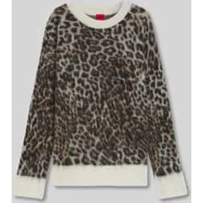 Gebreide damespullover van HUGO;Model 'Seratu';Look: All-over motief;Pasvorm: Loose fit;Motief: Dierenprint;Kraagmodel: Hoge ronde hals;Mouwvorm: lange mouwen;Mouwboord: geribd;Rompzoom: geribd;Materiaalverwerking: Knitwear