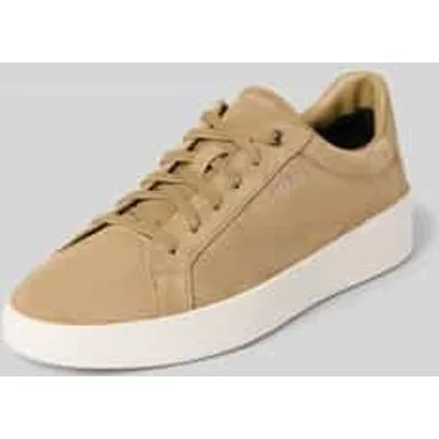 heren low top sneakers van HUGO;Model 'Lyde_tenn';look: effen;Punt van de schoen: afgerond;Hakvorm: plat;applicatie: labelapplicatie;sluiting: vetersluiting;Zool: gestructureerd;materiaalverwerking: suède;Materiaal: echt leer