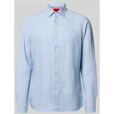 Heren vrijetijdsoverhemd van HUGO;Model "Valerio";look: all-over motief;Pasvorm: modern fit;overhemdkraag: kentkraag;knoopsluiting: enkele knopenrij;Patroon: gestreept;Mouwvorm: lange mouw;mouwboord: manchet;Materiaal: puur linnen